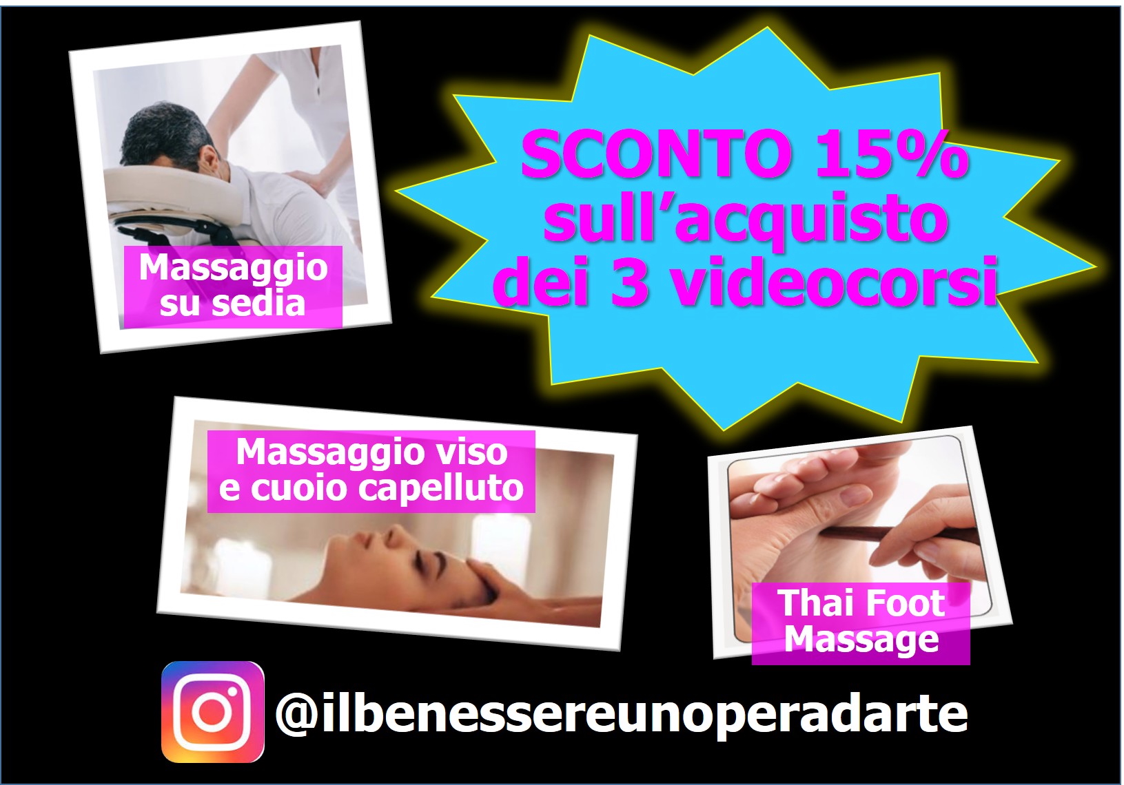 Video e dispensa con le foto dei vari passaggi del Massaggio su sedia. E’ ideale quando non è possibile far stendere il ricevente sul lettino. Riduce la tensione della zona cervicale, delle spalle e della schiena; riattiva la circolazione; restituisce tono e vitalità; elimina la stanchezza.